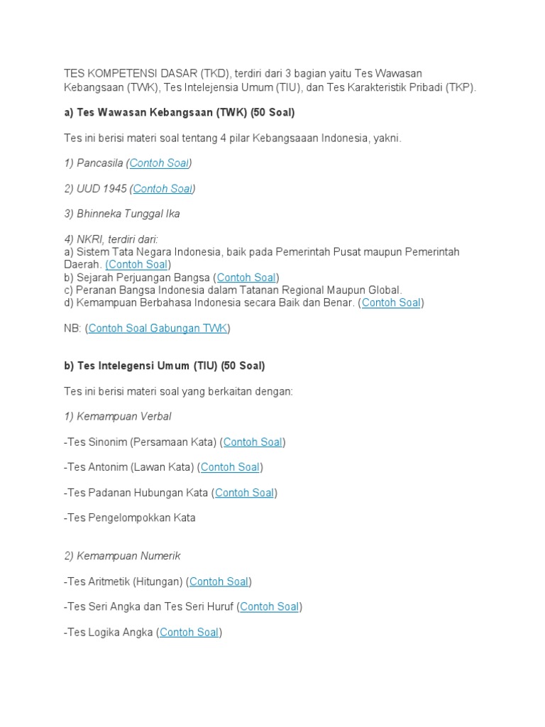 Pdf Tiu Tes Intelegensi Umum Twk Tes Wawasan Kebangsaan